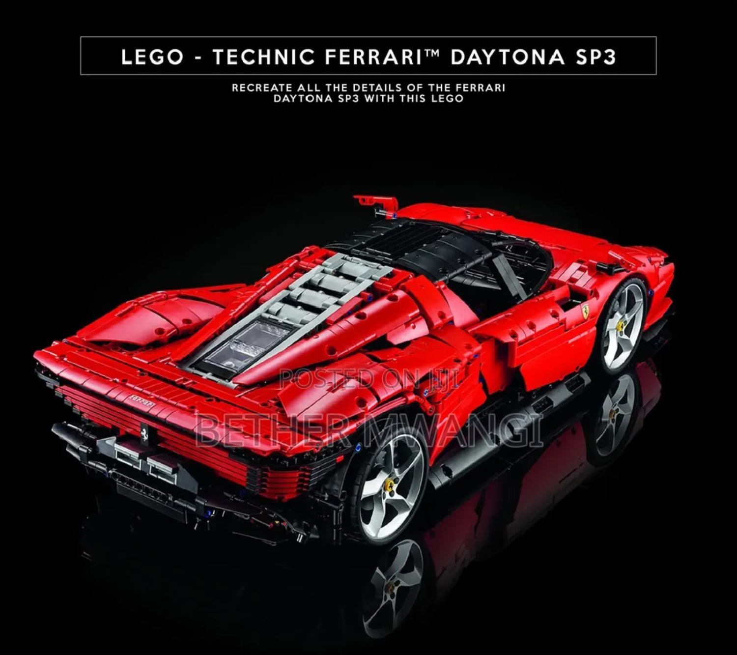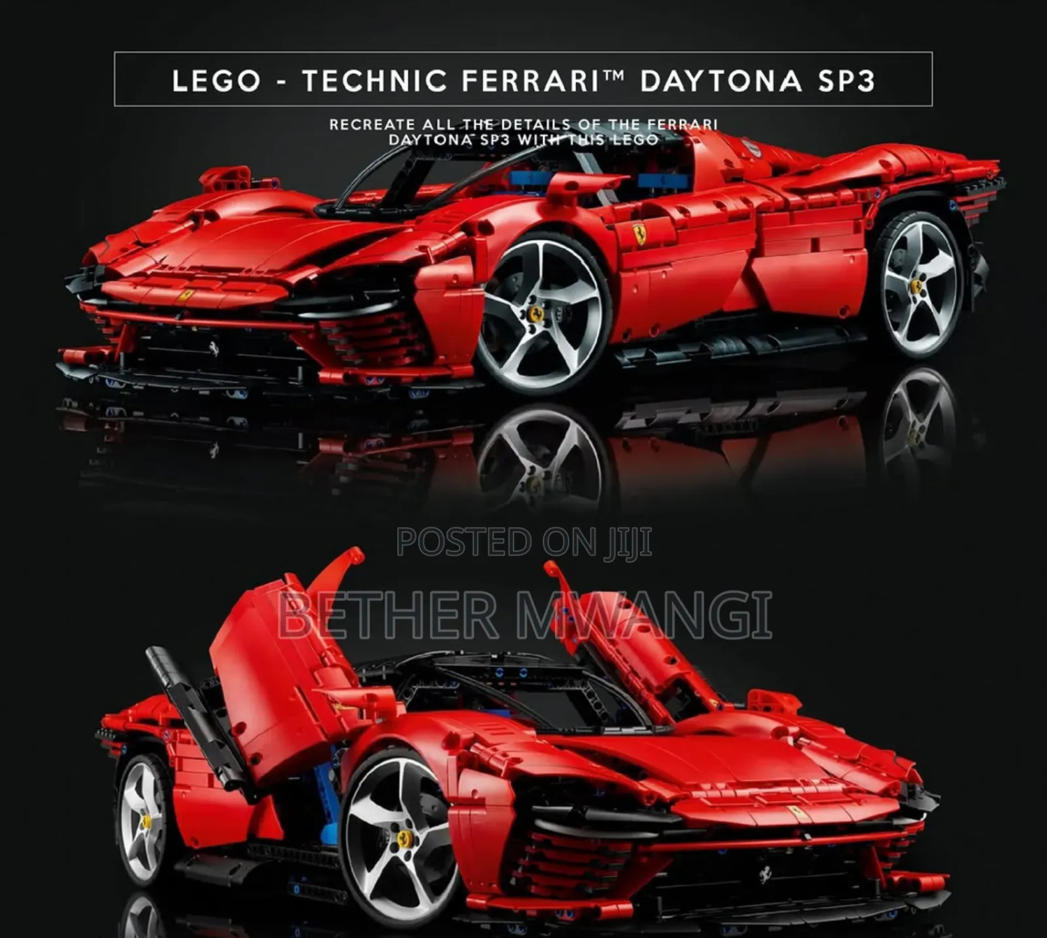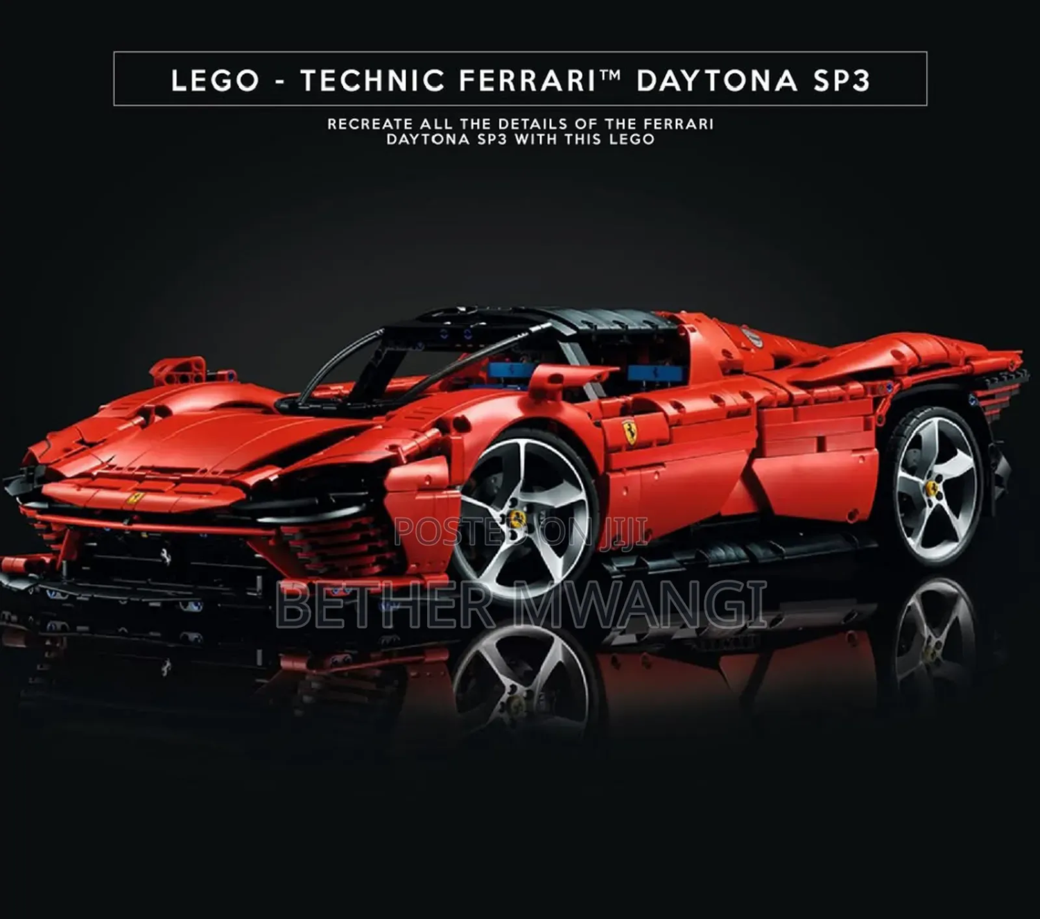 Bring the thrill of Ferrari's engineering masterpiece to life with the LEGO Technic Ferrari Daytona SP3. This exquisite model is a must-have for car enthusiasts and LEGO builders alike, offering a blend of intricate design, innovative functionality, and a stunning showcase of automotive craftsmanship. Key Features: Authentic Design: Recreate the legendary Ferrari Daytona SP3 with this detailed 1:8 scale LEGO Technic model, featuring its iconic curves, sleek silhouette, and vibrant red finish. Working Features: Experience realism at its finest with functional elements such as:A working 8-speed sequential gearbox controlled by paddle shifters.A moving V12 engine with pistons. Opening butterfly doors for an added touch of luxury. Precision Steering and Suspension: Equipped with a steering system and front/rear suspension.