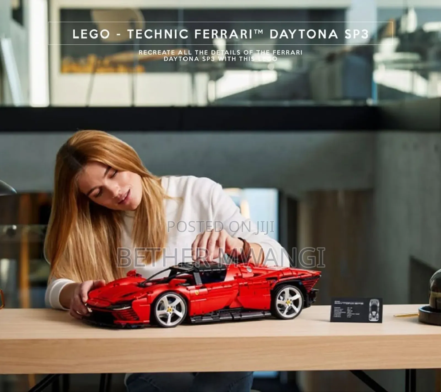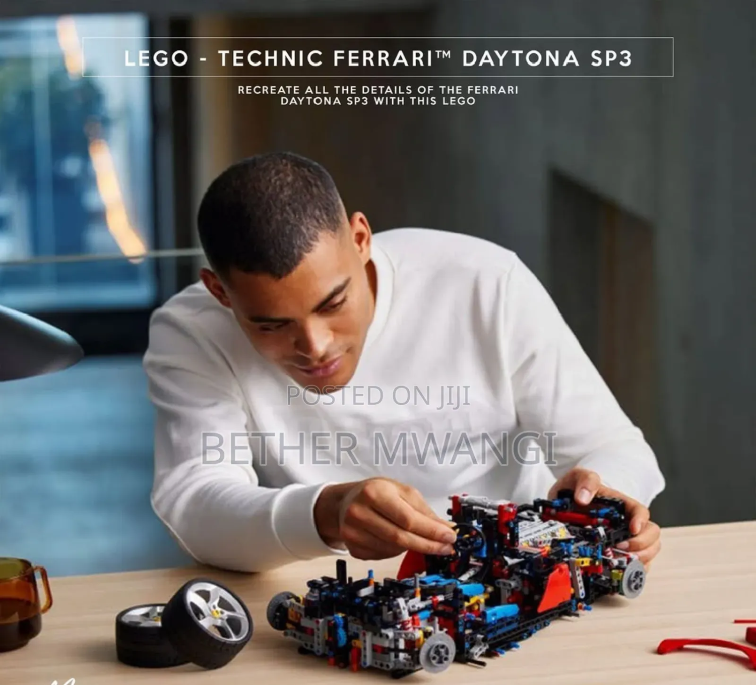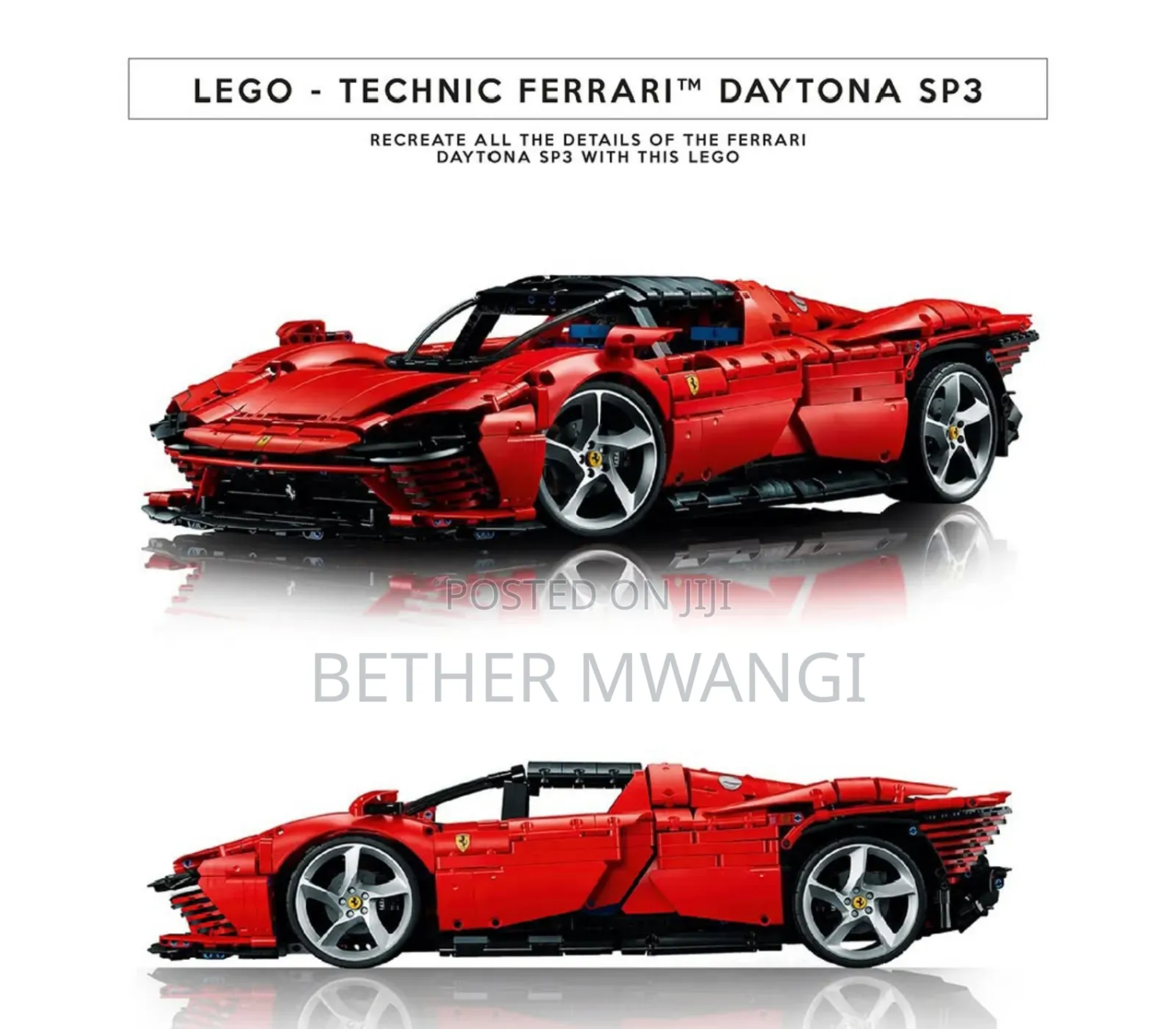 Bring the thrill of Ferrari's engineering masterpiece to life with the LEGO Technic Ferrari Daytona SP3. This exquisite model is a must-have for car enthusiasts and LEGO builders alike, offering a blend of intricate design, innovative functionality, and a stunning showcase of automotive craftsmanship. Key Features: Authentic Design: Recreate the legendary Ferrari Daytona SP3 with this detailed 1:8 scale LEGO Technic model, featuring its iconic curves, sleek silhouette, and vibrant red finish. Working Features: Experience realism at its finest with functional elements such as:A working 8-speed sequential gearbox controlled by paddle shifters.A moving V12 engine with pistons. Opening butterfly doors for an added touch of luxury. Precision Steering and Suspension: Equipped with a steering system and front/rear suspension.