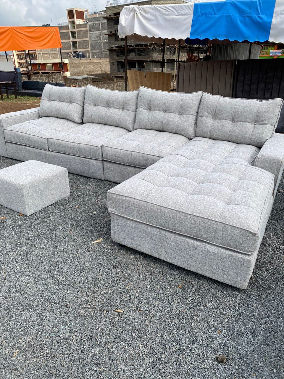 This Lshaped sectional sofa has been made with spring cusions with a fine touch of synthetic pure fibre.