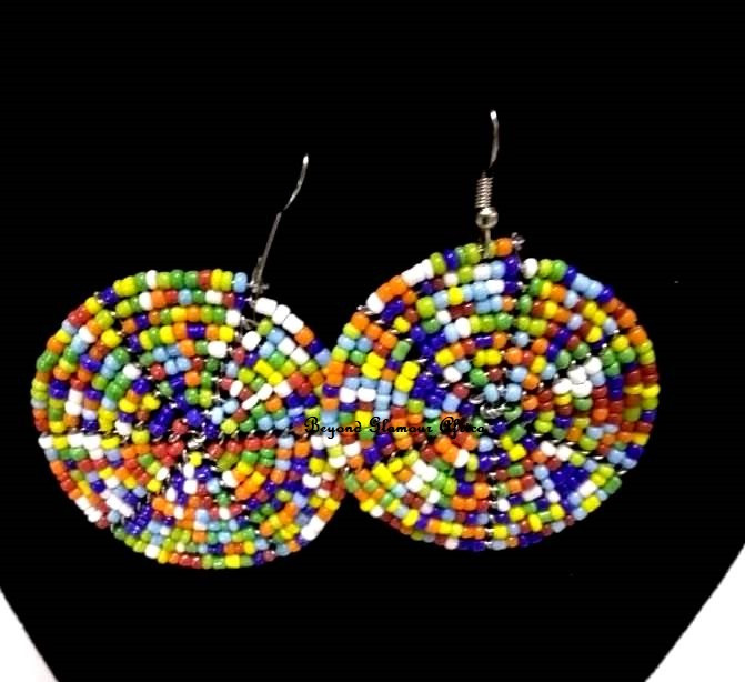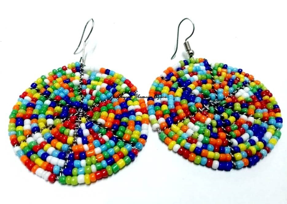 • African inspired two tiered round earrings.