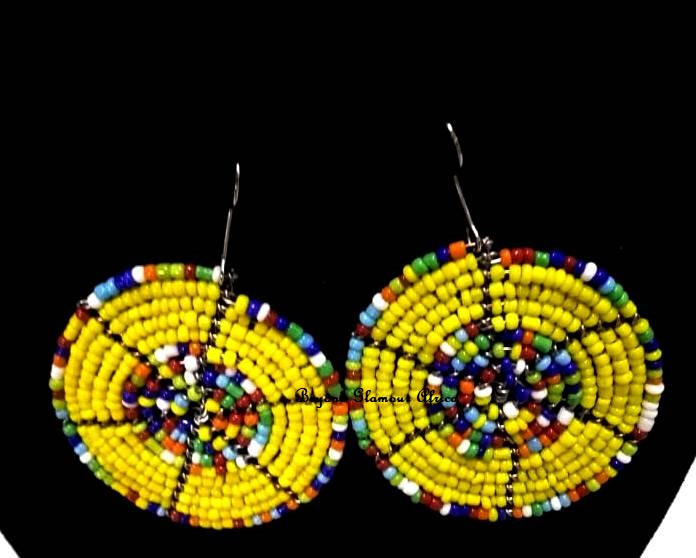 Womens Yellow beaded maasai earrings