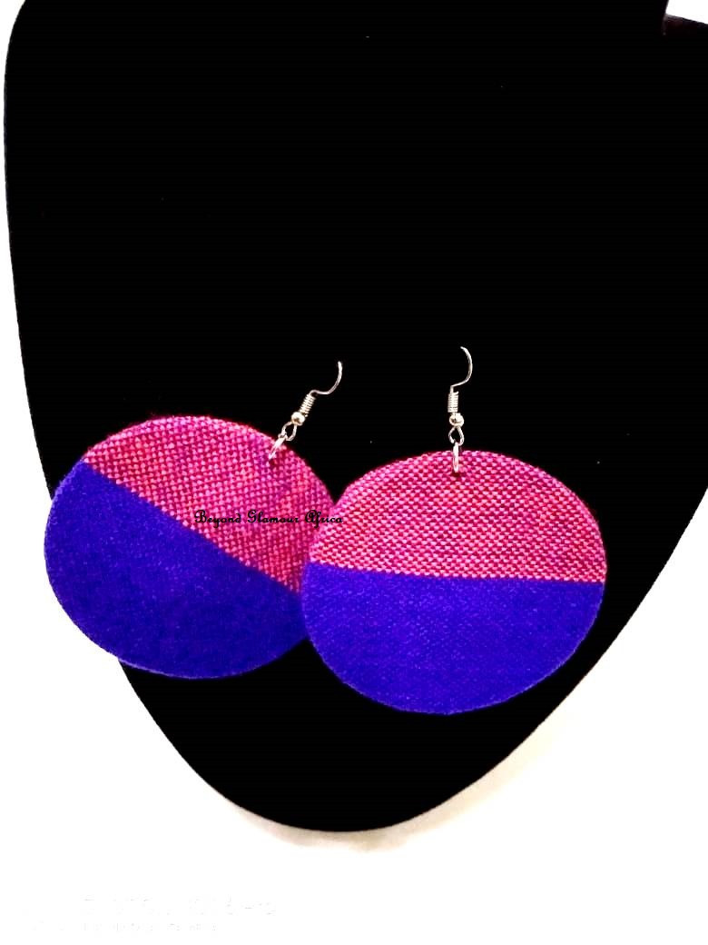 • The round earrings are made from genuine Maasai Shuka cloth and have traditional African patterns in bright colors.