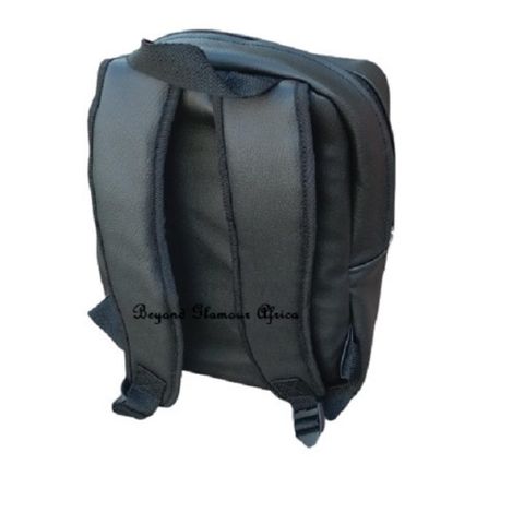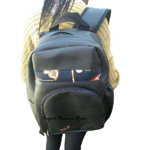 men and women's Black Leather with multi color ankara laptop Backpack
