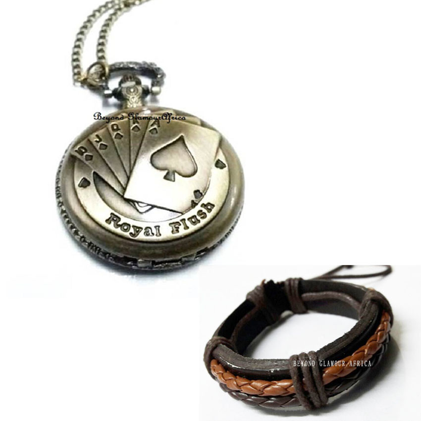 Mens Flush Card Pocket watch with leather bracelet