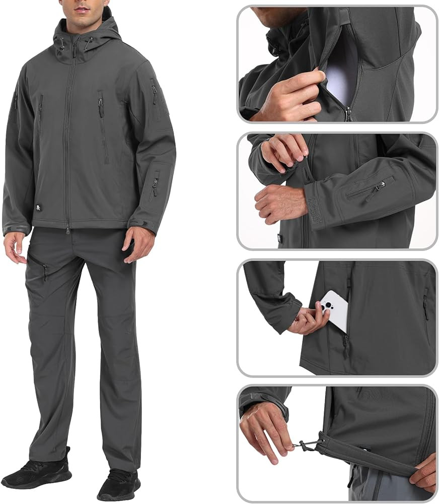 Construction:2 high chest pockets ,2 zipper back pockets where you can put some large things like the map,glove and so on,2 sleeve pockets,you can put the cellphone,mp3.And there is a hole passing in it.2 hook & loop tapes,you can choose badge which you like.Forearm pocket which on the left arm for key etc small accessaries.