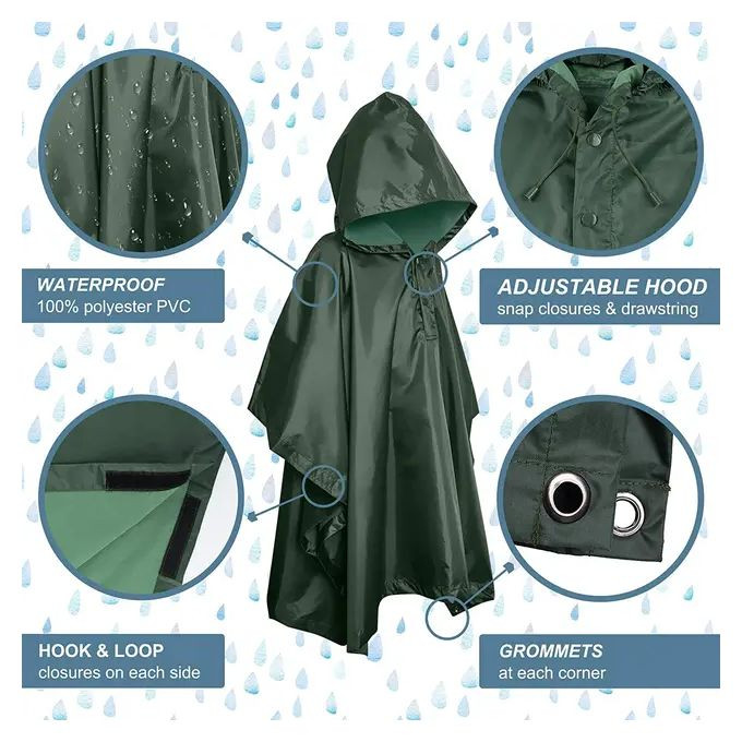 【ENJOY YOUR LIFE】Stay dry under extreme conditions with this versatile rain poncho, You don't have to worry about rain and enjoy your camping weekend, fishing trip, outdoor music festival, hiking trip or hunting activities.