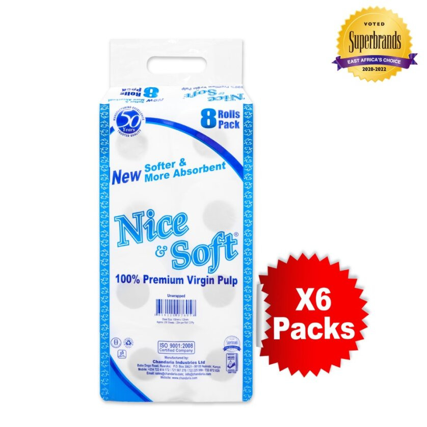 Nice & Soft 2 Ply Premium Unwrapped White Toilet Tissues 8 x 6 Packs in a Bale
