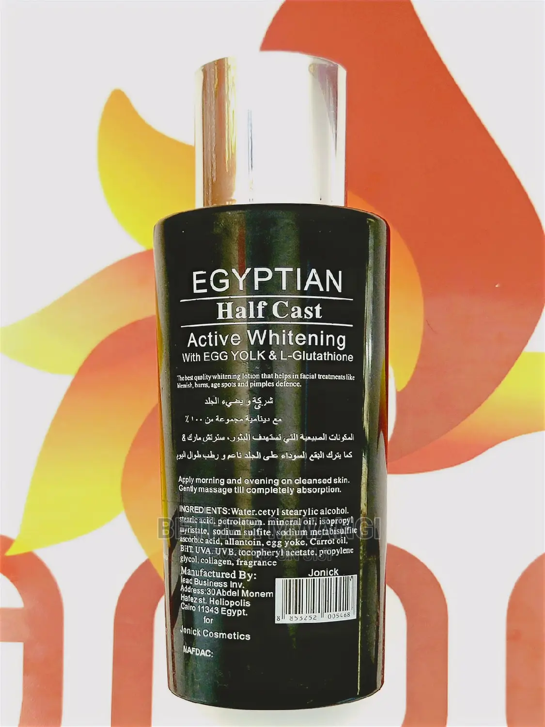 Egyptian Half Cast Lotion contains active ingredients which help to regulate sebum excretion and lighten the complexion. The soothing effect will leave your skin looking healthier, visibly clearer, with less flaws and a smoother appearance.