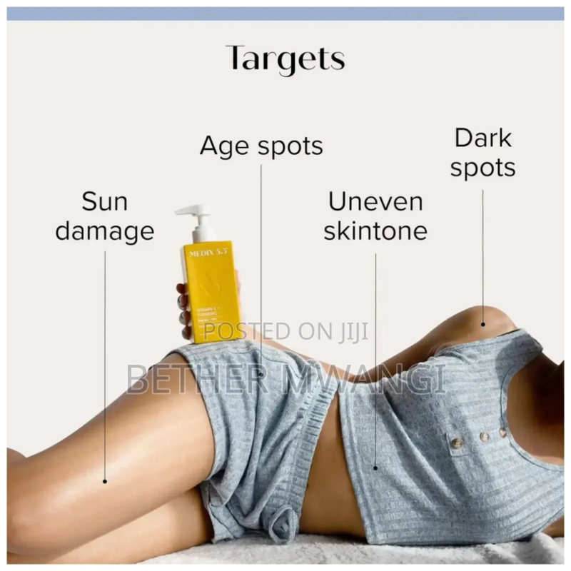 RADIANT SKIN – This Medix 5.5 Vitamin C Body Cream infused with Turmeric helps refine the look of ageing skin and uneven skin tone. Advanced Brightening Vitamin C Body & Face Lotion helps refine the look of discoloured skin, age spots, freckles, sun damage from sunspots, rough skin texture, hyperpigmentation, & acne scars.
