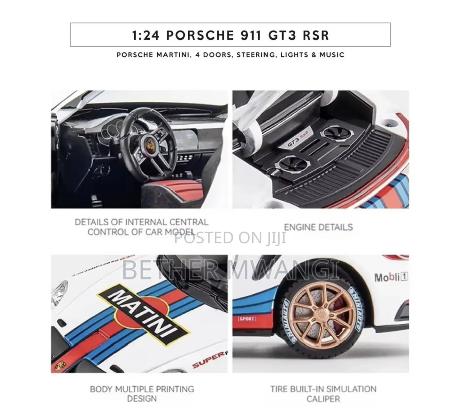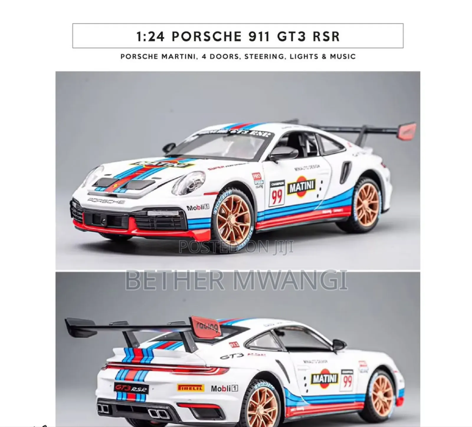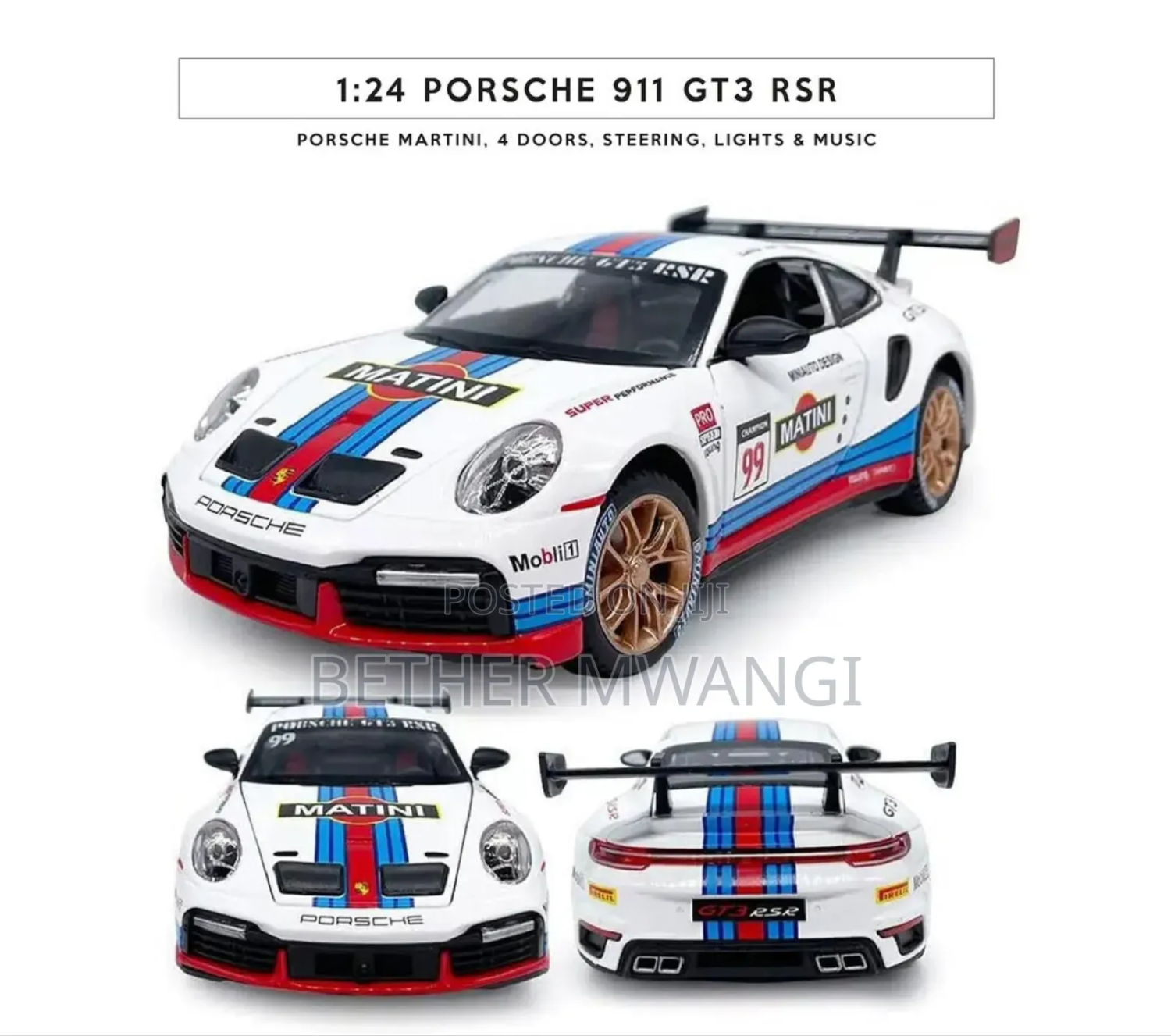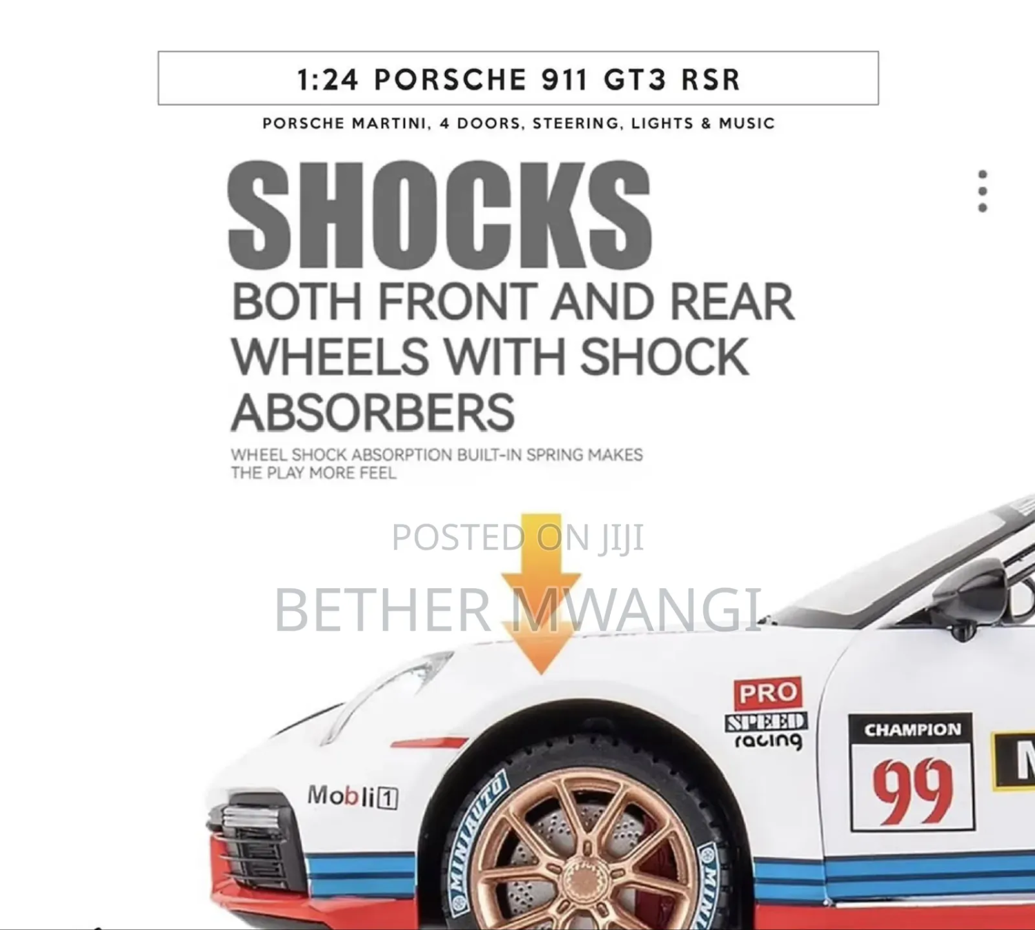 The front wheel is steered, the rearview mirror can be opened, and has the function of sound and light return. Immersive sound and light experience, in sound and light mode, press the front wheel or open the door to trigger the sound and light effect. Cool big tail design: There is a big tail for the track at the tail. The front hood and hood can be opened, and the analog chassis front and rear with buttons help to open the hood. The front wheel steering function is connected to the steering wheel to simulate a real ca steering the steering wheel steerable front wheels Battery-free pul-back function: Press your body on the ground, pull a distance, let go, and move forward automatically
