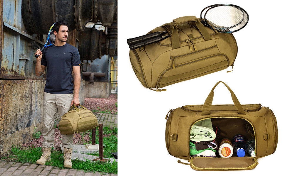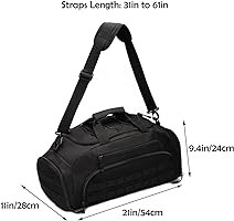 ✅ OUTSTANDING STRUCTURE -- Small size: 21.2x9.4x11 in, Large size: 25.2x13.7x11.8 in. 1 Huge compartment with a 2-way zipper's U-shaped opening. 1 Upgraded shoes compartment ventilated to keep your shoes and dirty gear separate. 1 Re-designed side pocket to hold your water bottle, notebooks, keys, cellphone, etc. The front zipped pocket can hold your ipad/kindle