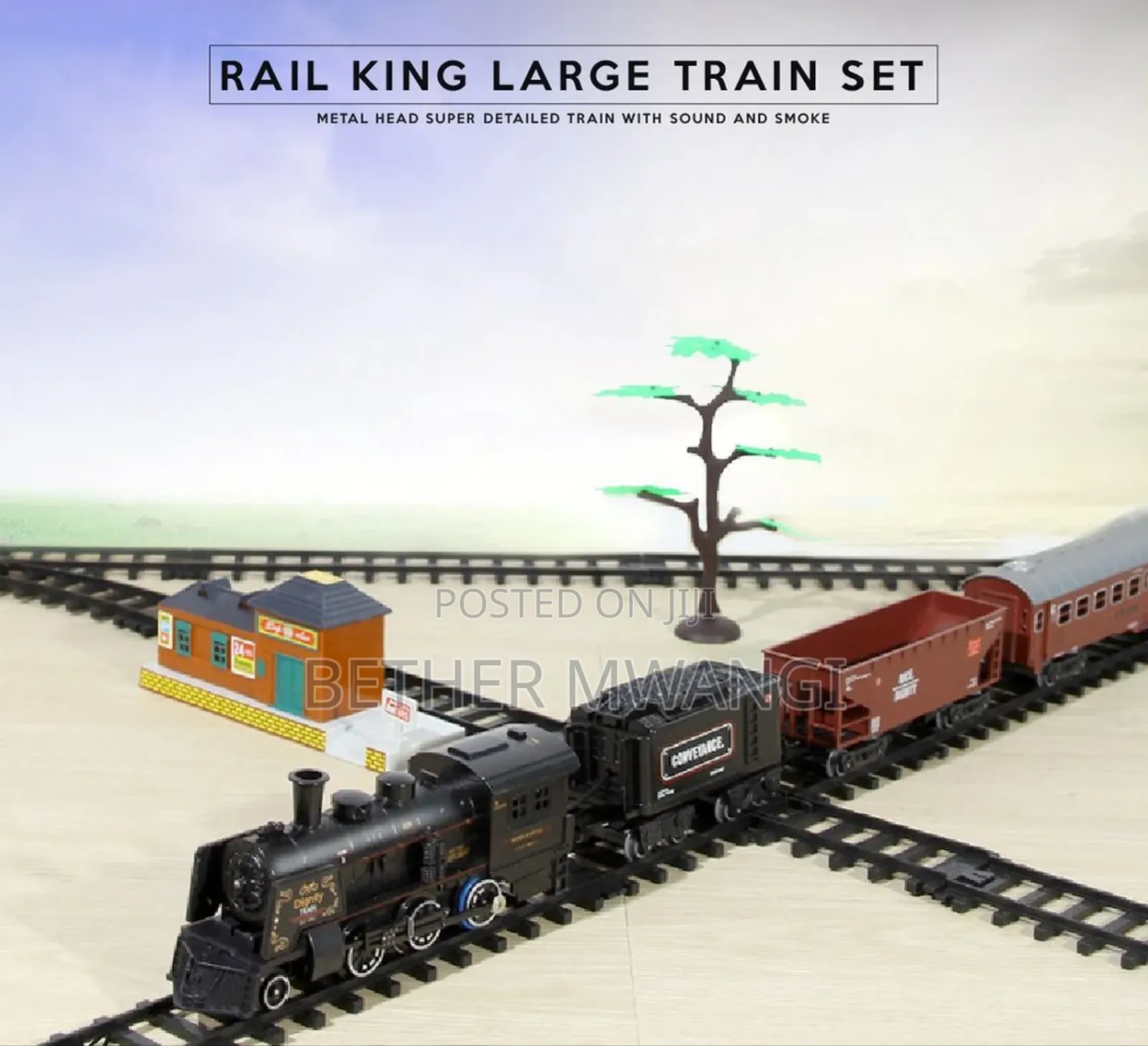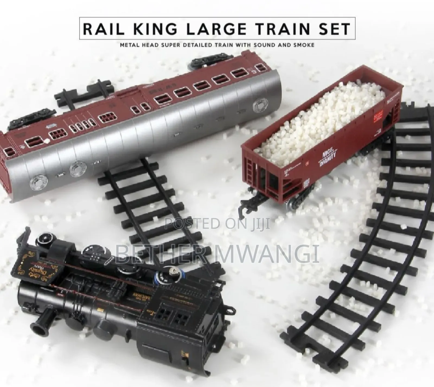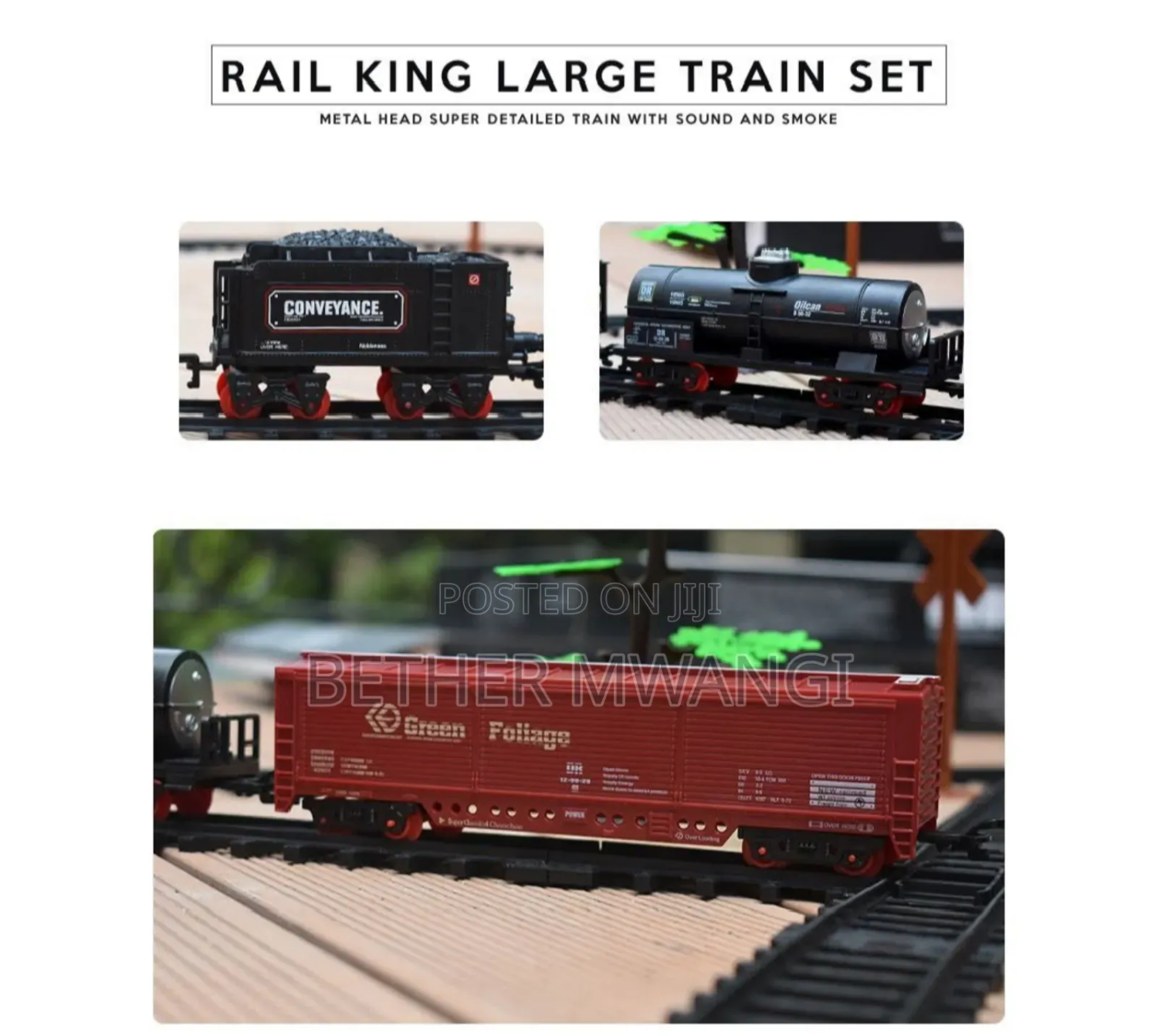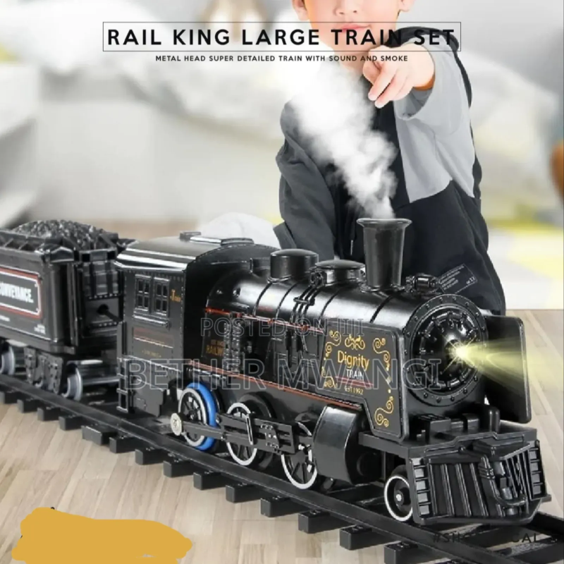 Scene simulation: realistic train shape and track. We are equipped with different types of carriages and traffic signs for you, which can simulate real train scenes, which can help children improve their perception.All of our parts are made of high-quality materials that are non-toxic. The body is made of high-quality alloys, thick and textured, exquisite locomotives, flashing lights and music, and the chimney can produce heat. The smoke effect simulates the smoke of classic real draught vapour and produces white smoke which is hygienic and non-toxic. Multi-track train: the rails can be spliced and built into a variety of shapes. Kit includes: locomotive steam engine, cars, trucks, coal cars, rails, traffic signs. The train must use 4AA batteries for power supply. Batteries Included. Power source: wired, electric