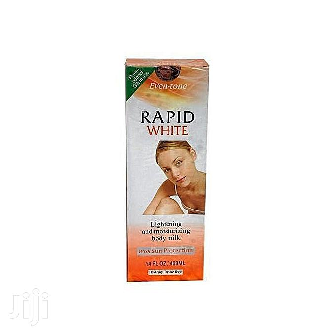 Rapid white lotion is a safe and hydroquinone free lotion that helps one to lighten evenly. It gets rids of age spots,uneven skin tone,givin one a radiant even skin tone.