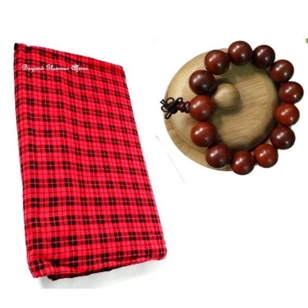 Classics Maasai Shuka with Red shamballa wooden bracelet