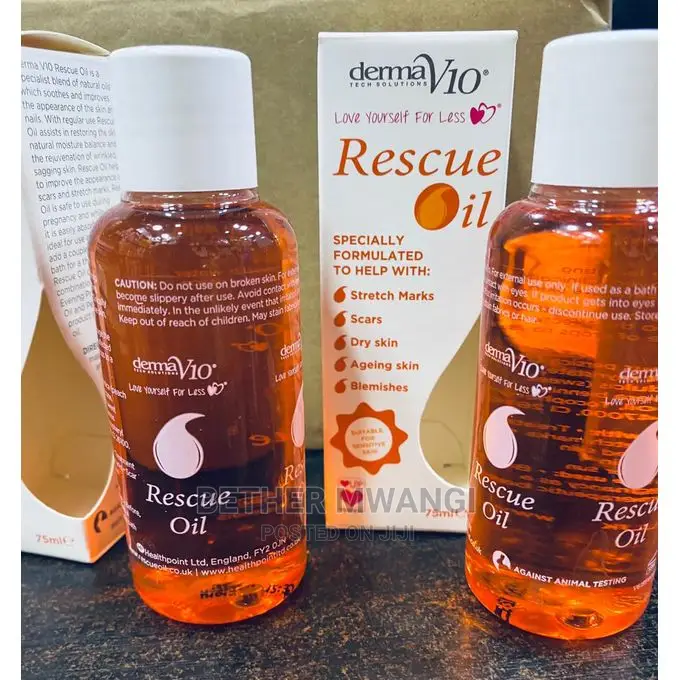 Derma Rescue Oil Anti-ageing Anti-stretch Mark Rescue oil is specially formulated to help with stretch marks, scars, dry skin, ageing and other skin blemishes. We also strongly recommend this product for anyone looking for quick results