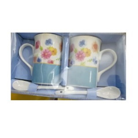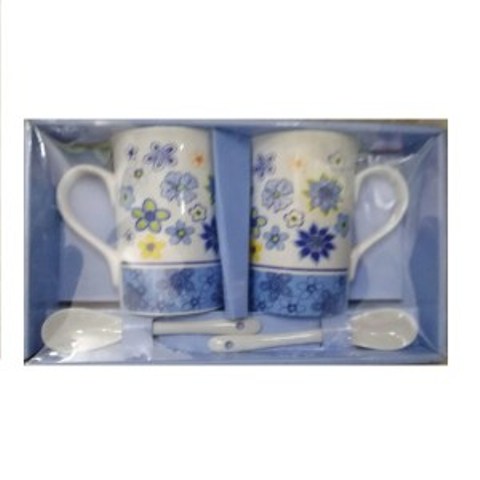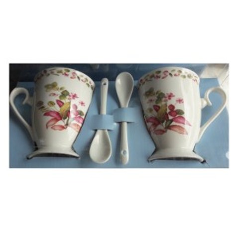 Round Floral Printed Porcelain Coffee, Tea Cups – 2 Pack – 2 Teaspoons included – with Package