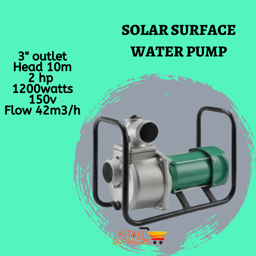 This is a high flow rate solar pump best suited for flood irrigation, fish pond aeration, and direct drip irrigation systems. The water pump has a flow rate of 42,000 Liters per Hour. The Outlet and Inlet pipe should be 3 inches so that the flow rate is assured.