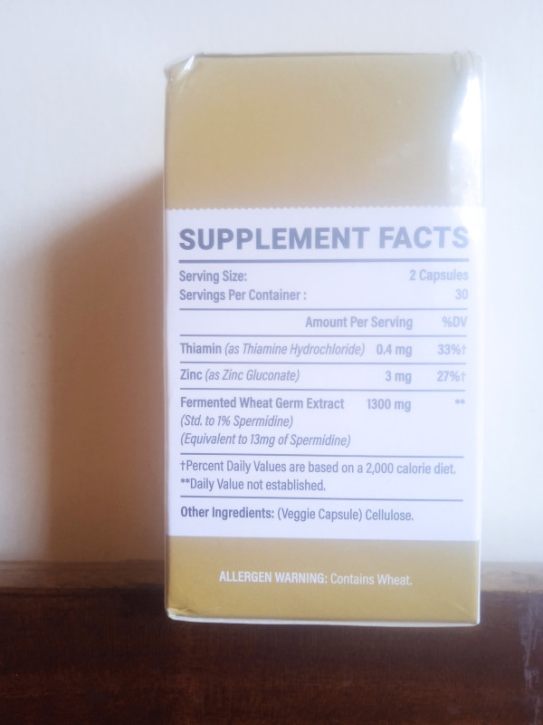 Spermidine Wheat Germ Extract Capsules is a highly concentrated, high quality, spermidine rich dietary supplement. Promotes cell turnover through autophagy, increases spermidine levels as well as zinc and thiamine.