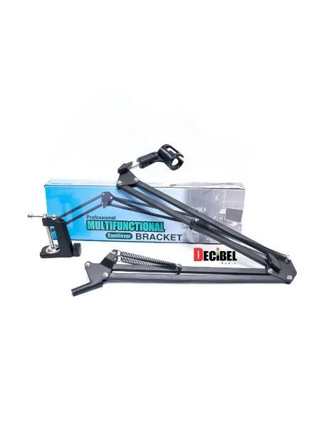 The Studio Arm Stand is a versatile and durable microphone suspension boom scissor arm stand designed to provide a professional and secure attachment for your microphone. Constructed with sturdy steel material, this arm stand ensures long-lasting performance and stability during use. The package includes a plastic microphone clip, making it compatible with most standard-sized handheld microphones.