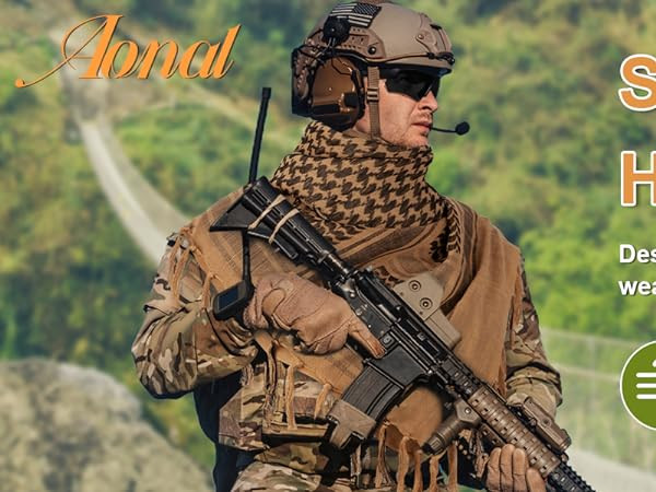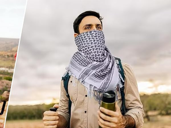 Multiple Purpose: Keffiyeh is a versatile tactical scarf. The scarf for men is perfect for outdoor activities. It not only protects your face and neck from sun, wind and sand when hunting, hiking, climbing and fishing, but also can be used as a blanket, arm sling, sweat rag, camouflage.