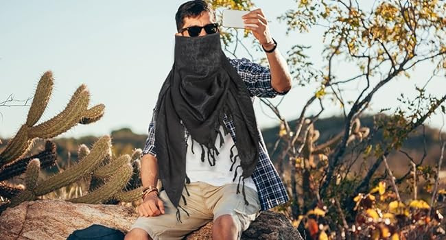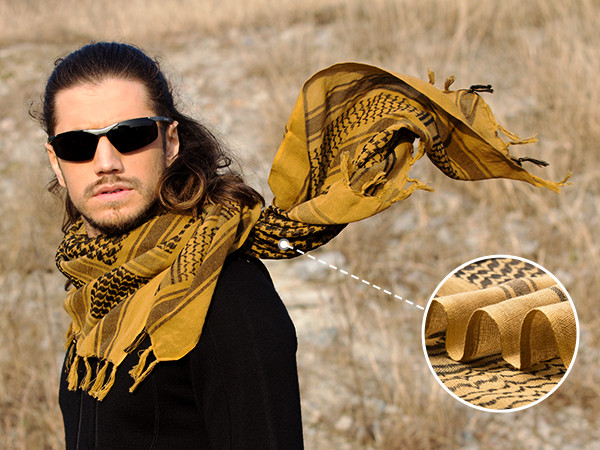 Soft Material: The shemagh scarf men is made of 100% cotton, extremely soft, breathable and durable. Soft material of the arab scarf for men provides comfort in any weather condition. The desert scarf will soften up with multiple use to give you a good adventure experience.