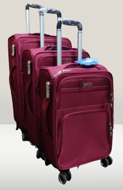 FASHIONABLE 4 PC 4 WHEEL MATERIAL TRAVELLING BAG-MAROON