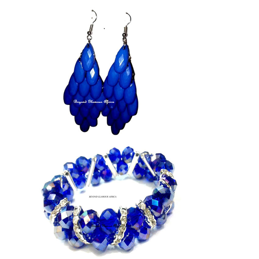 Womens Blue crystal bracelet and earrings