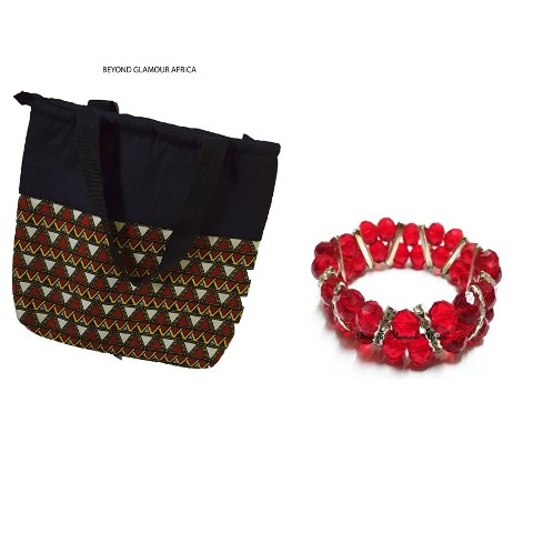 Womens Blue Denim Handbag with crystal Red Bracelets