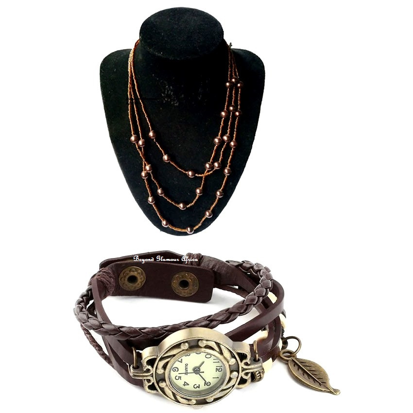 The complementary vintage leaf beads pendant gives the watch an extraordinary look of charm. More than a practical watch, it is also a leather bracelet. Charming wrist watch will endear you to anyone who has an eye for classic vintage designs.