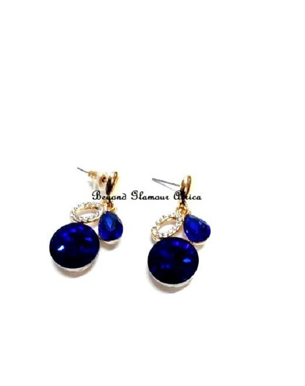 Womens Golden Blue Crystal Earrings