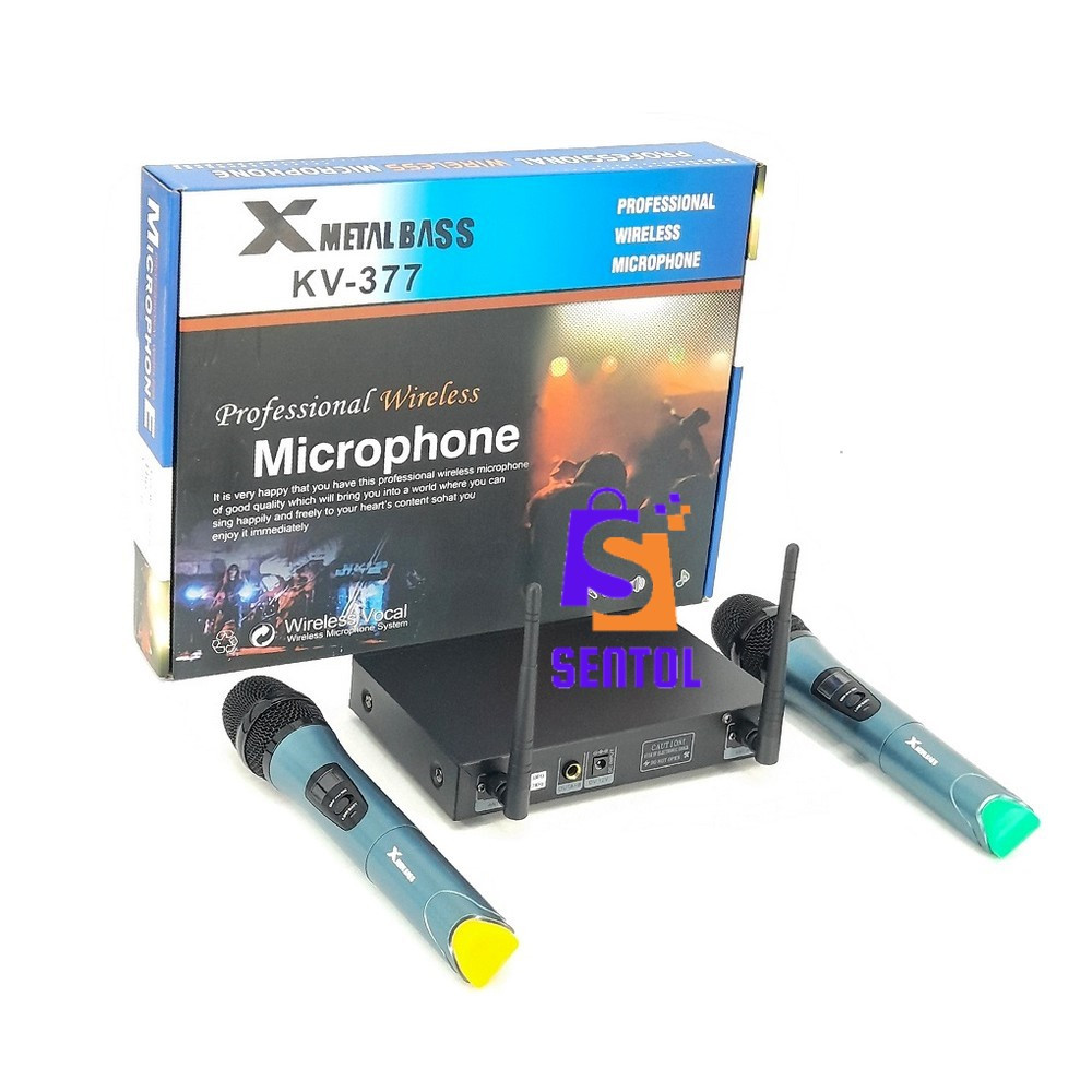 - Each microphone uses 2 AA-size batteries (included)