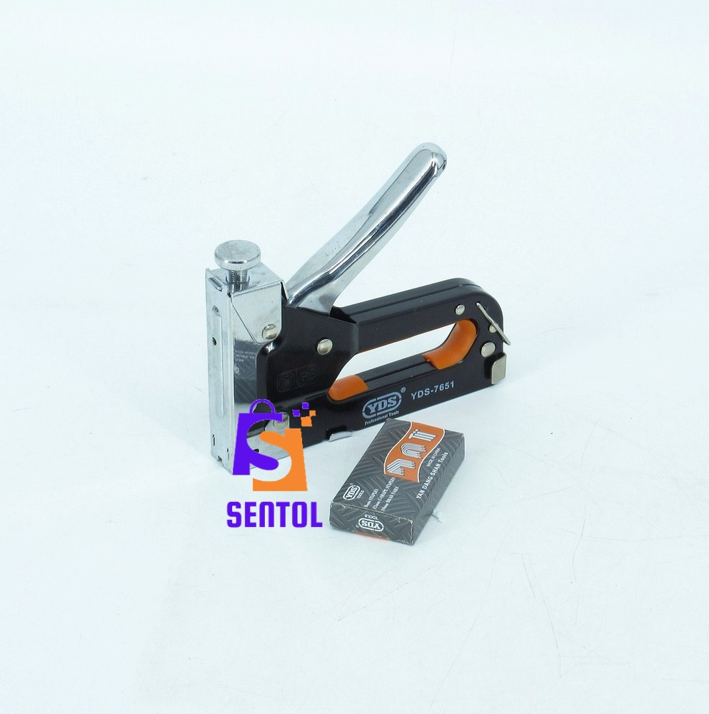 - Manual staple gun made of thick carbon steel with the principle of spring-back impact